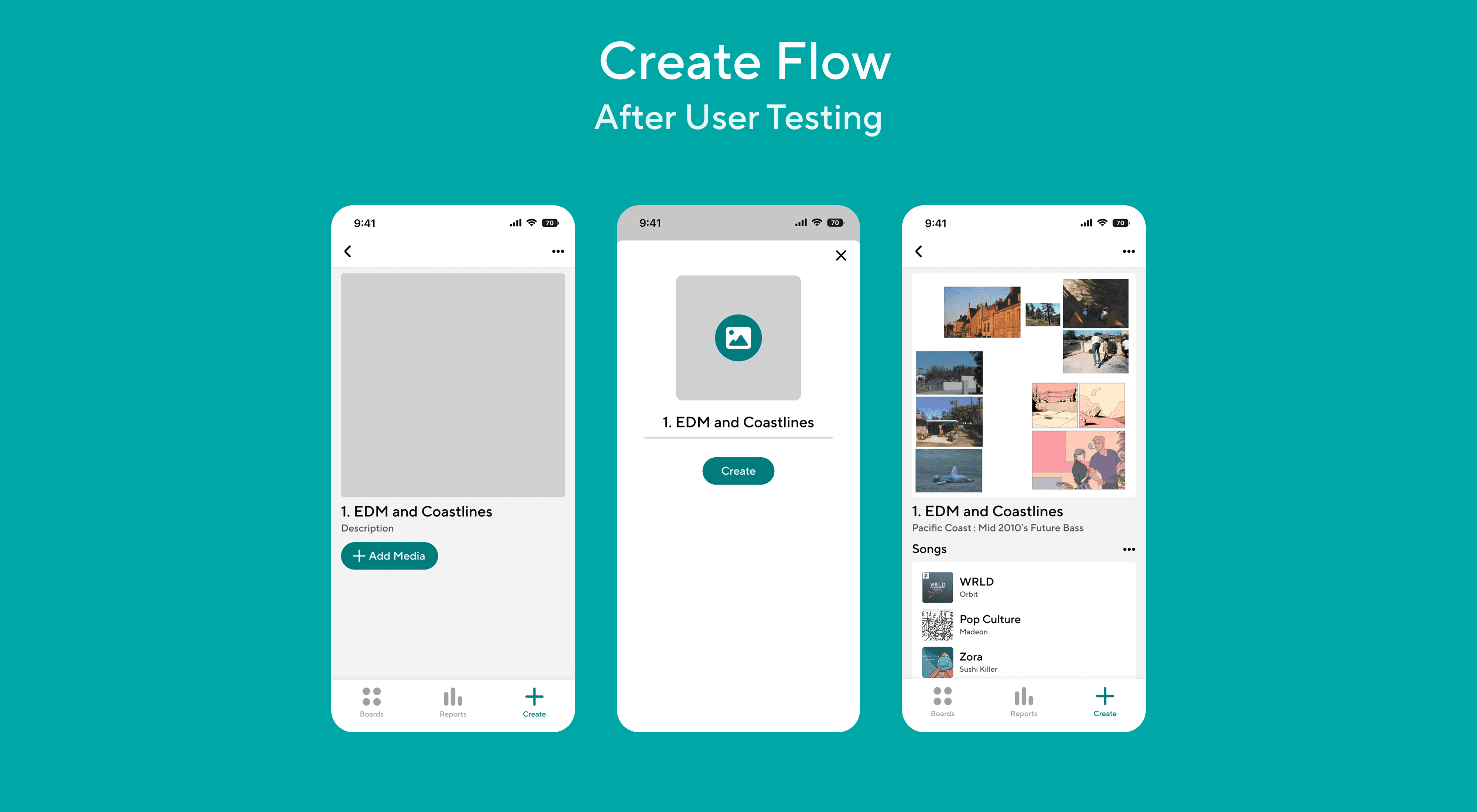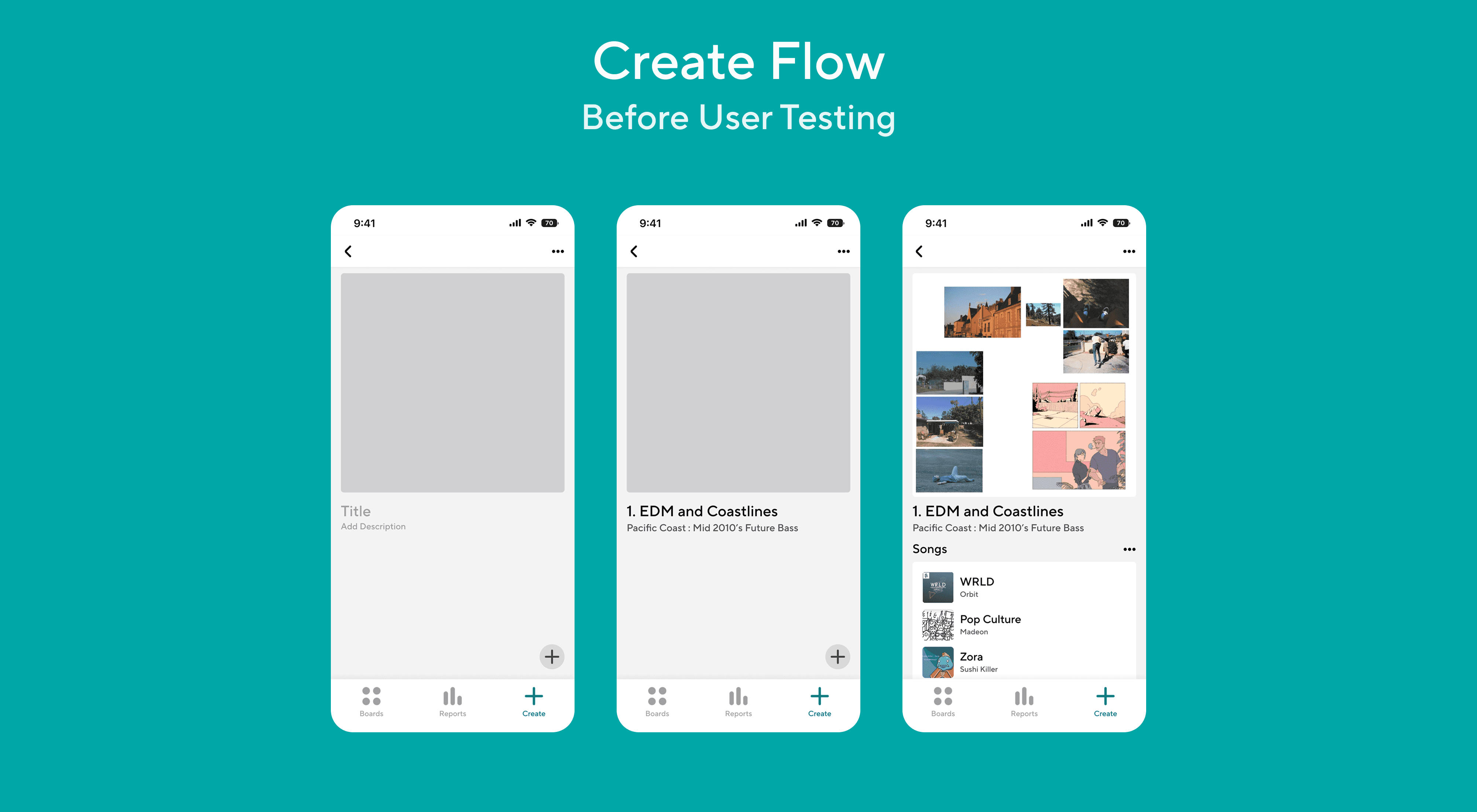 During user testing, CTA’s such as “Add a Title” or “Add Media” were poorly positioned and it was unclear to users where to go next. To solve this problem, I took a more step by step approach, only asking users to complete one or two tasks at a time before going to the next step.